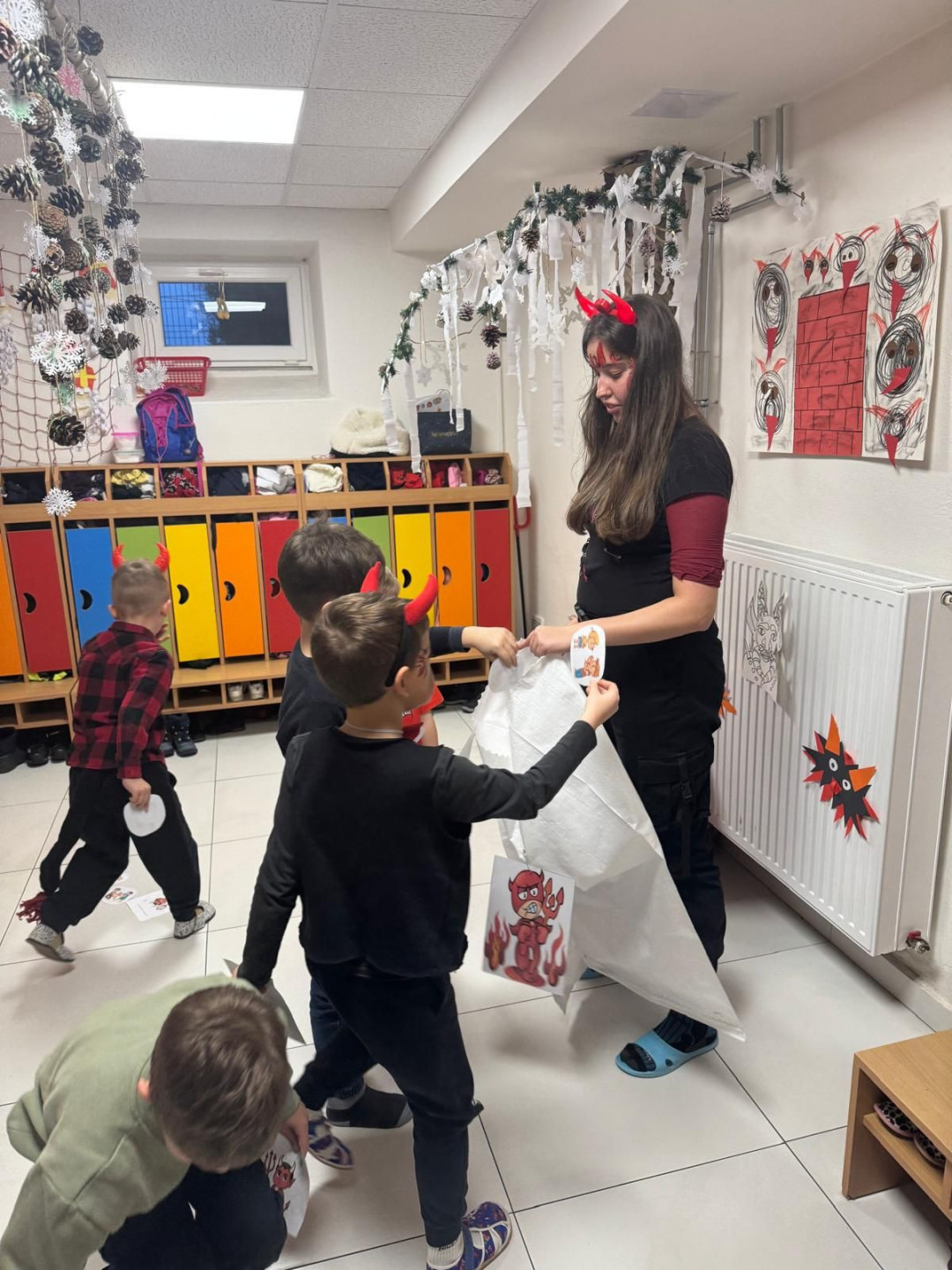 Společně s rodiči jsme si užili krásné mikulášské odpoledne plné zábavy a čertovských zážitků. Děti se proměnily v malinké čertíky a pro své rodiče si připravily veselou čertí besídku. Po vystoupení dostaly děti startovací kartičky a vydaly se plnit různé pekelné úkoly například ošetřovaly zraněného čerta, třídily hříchy, vařily čertovský guláš a vyzkoušely si i pořádně divokou pekelnou opičí dráhu. Na závěr čekala na ty nejodvážnější odměna – mohli si vlézt pro svůj mikulášský balíček. Bylo to příjemné a veselé odpoledne, během kterého jsme si všichni užili spoustu zábavy a předvánoční atmosféry.