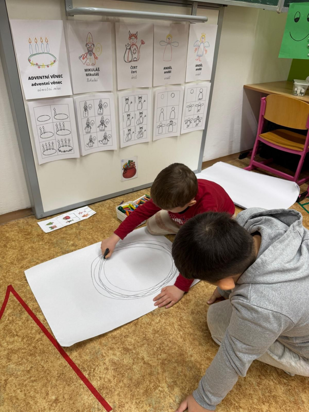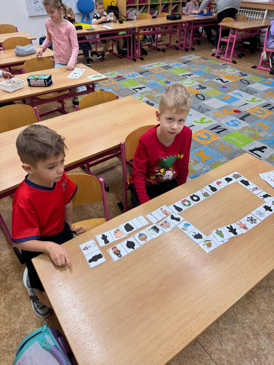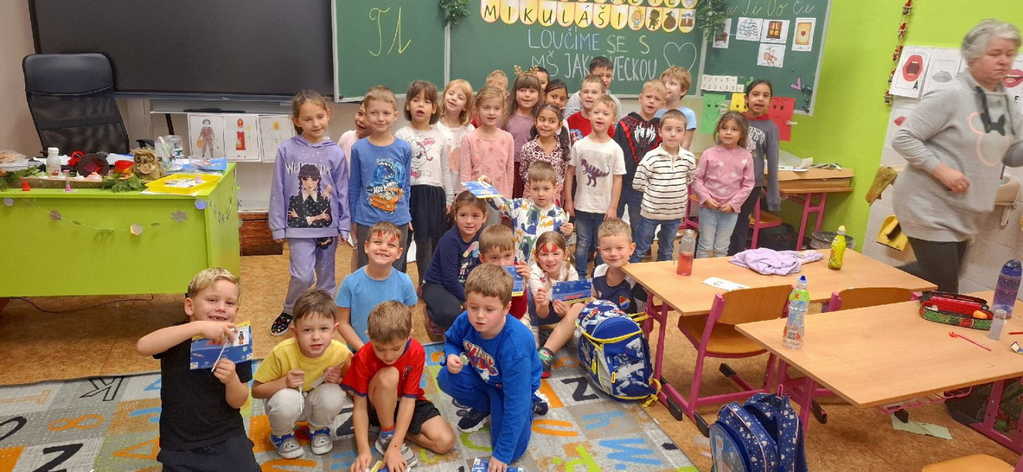 5.12 jsme s našimi předškoláky naposledy navštívili Základní školu Pěší. Společne s prvňáčky naši předškoláci plnili mikulášské, andělské a čertovské úkoly a výzvy. Společne počítali, učili se písmenka, kreslili a v tělocvičně si užili spoustu míčových her. Nakonec jsme od paní učitelky dostali diplom a odměny za to, jak jsme celý půlrok byli odhodlaní a šikovní. Prvňáčci se s námi rozloučili hezkou vánoční písničkou.