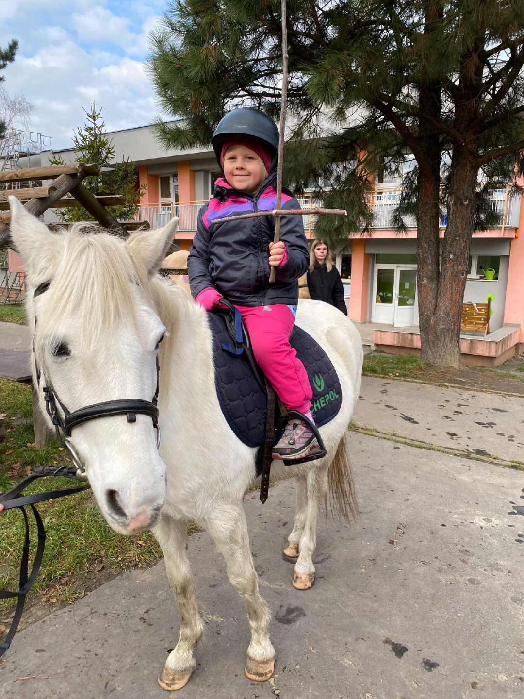 Druhý den dopoledne pokračoval program aktivitami s husím peřím, po kterých si děti samy zadělaly těsto na knedlíky. Když se knedlíky vařily, čekalo na ně venku velké překvapení: dva bílí koně, kteří připomínali svatého Martina přijíždějícího na bílém koni. Každé dítě se projelo a atmosféru doplnila další krátká scénka v podání učitelek.