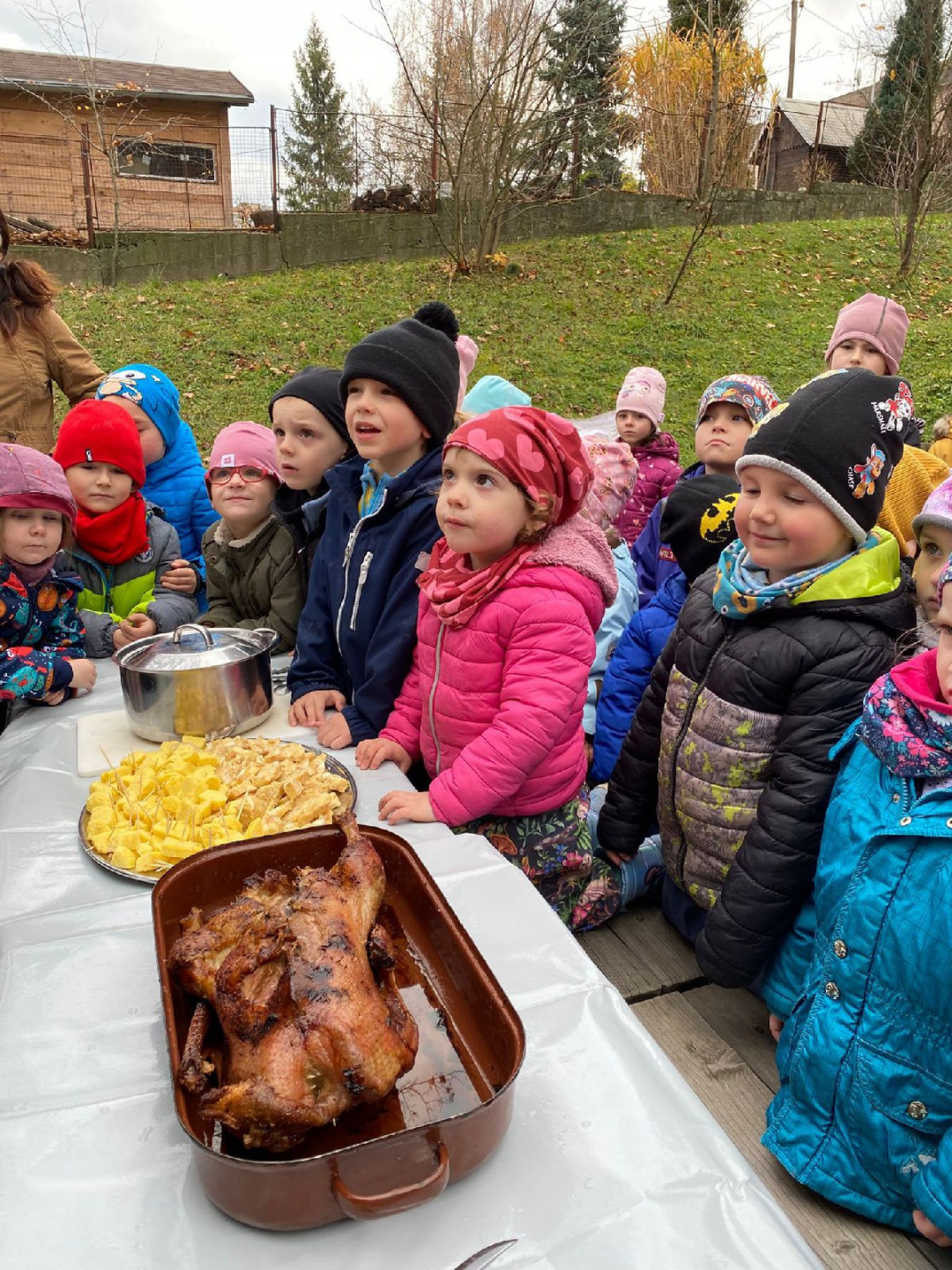Celý program vyvrcholil svatomartinskou hostinou na školní zahradě. Děti si pochutnaly na upečené huse, knedlících a zelí, které pomáhaly připravit. Akce byla plná emocí, příběhů, tradic a hlavně autentických zážitků, které v dětech zůstávají dlouho poté.