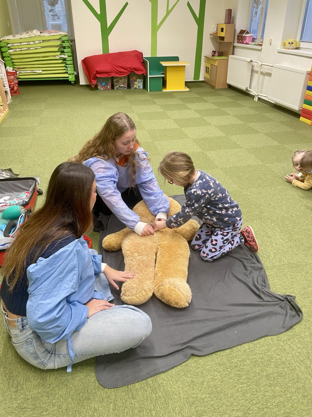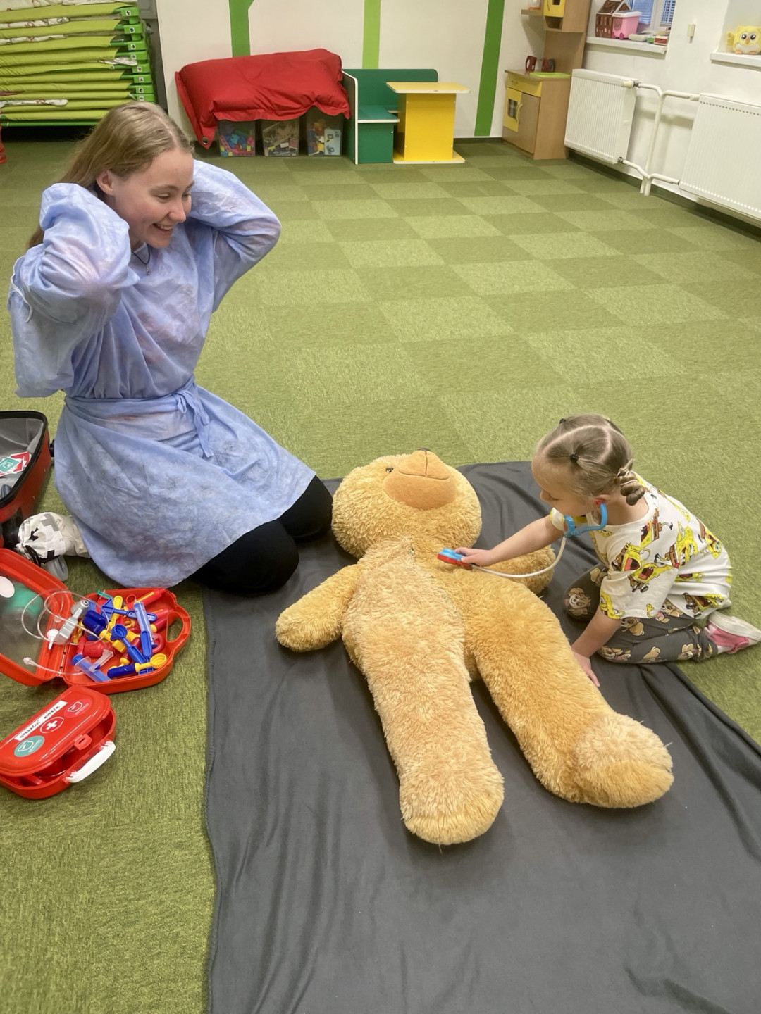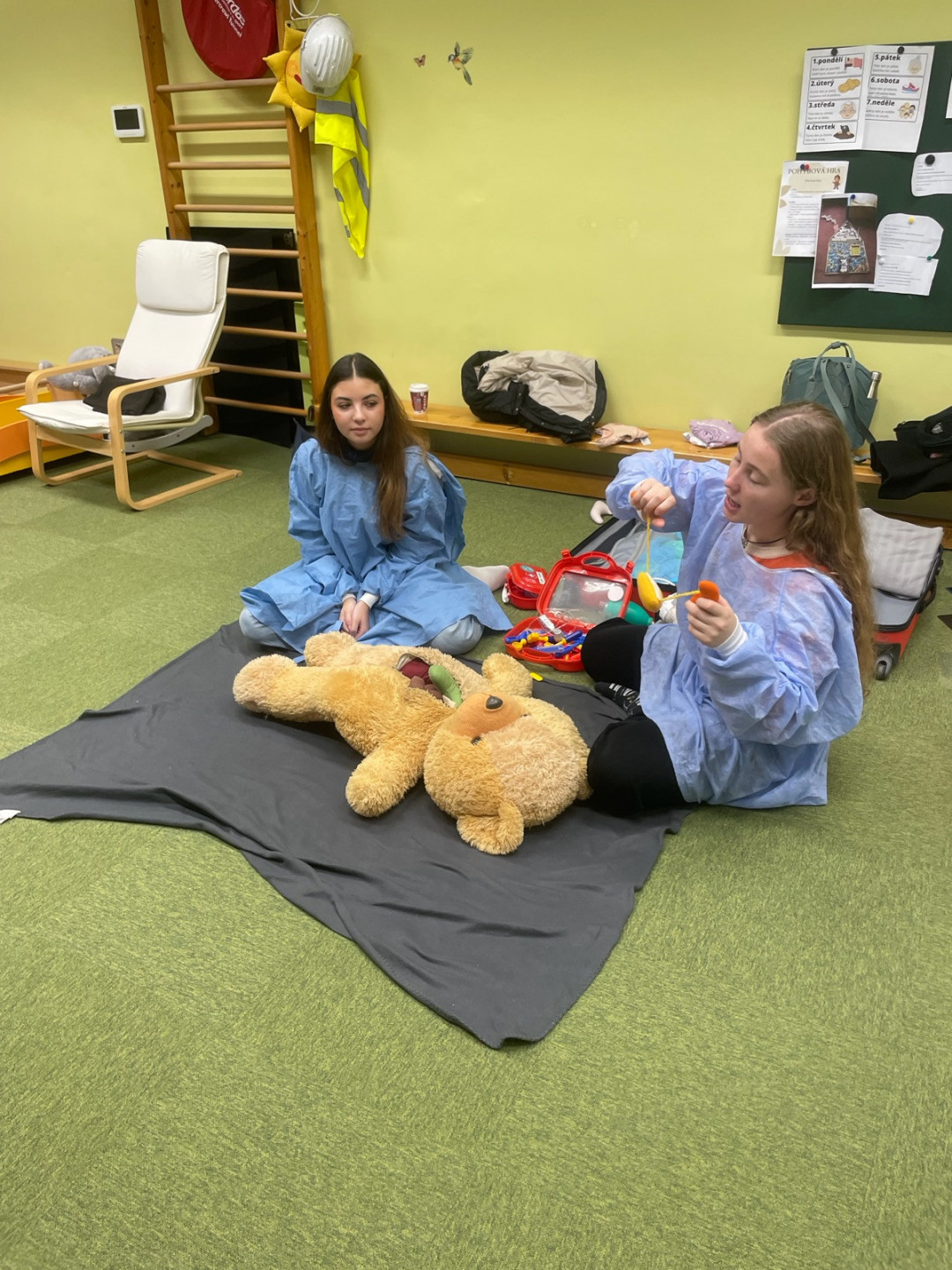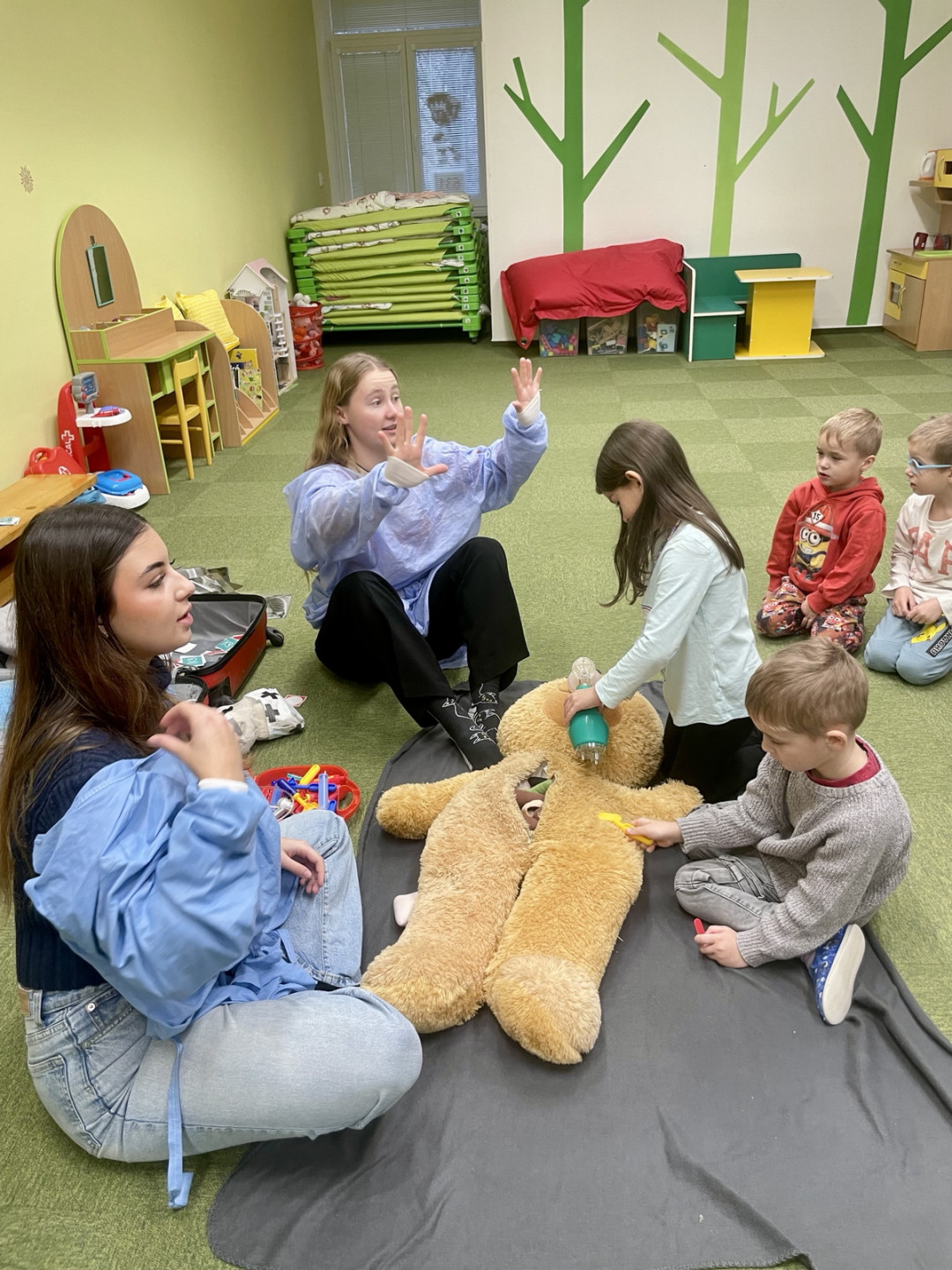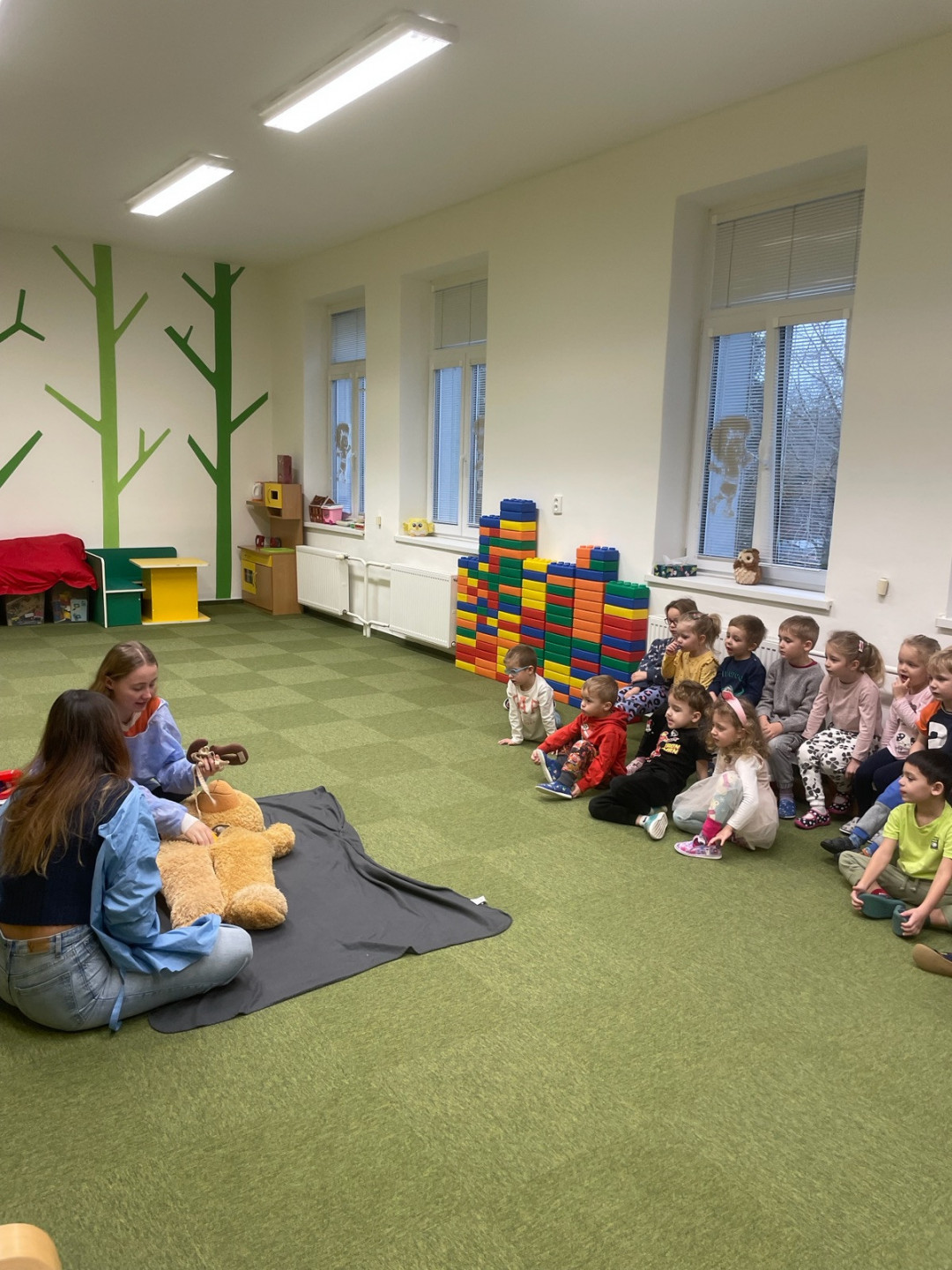 V pátek k nám do naší MŠ přišly studentky medicíny, které se dětem opravdu věnovaly,. Snažily se jim přiblížit naše lidské tělo, jak o něho pečovat, a které orgány máme v těle. Nemocnice pro medvídky je zajímavý vzdělávací projekt, který ukazoval dnes dětem hravou formou, že nemusí mít strach z lékařů.