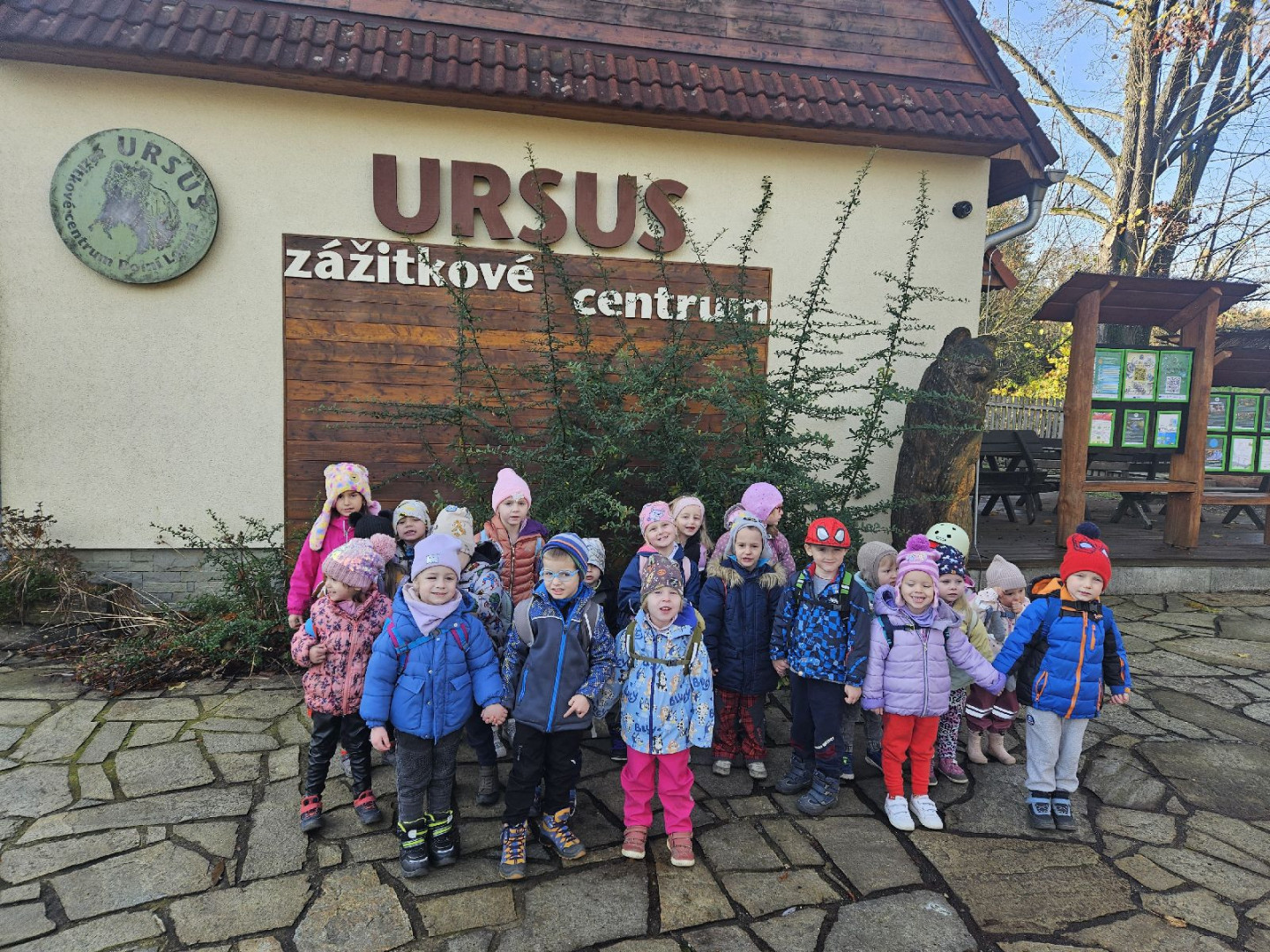 Prostřednictvím projektu Půdohrátky, který je realizován za podpory Statutárního města Ostravy si děti užily celodenní výlet do Dolní Lomné -centra URSUS. Během dne děti pozorovaly, zkoumaly, poslouchaly a dotýkaly se přírodních pokladů kolem nás. Děti si také vyzkoušely, jaké to je být malým badatelem a zkusily si různé přírodovědné experimenty, poznaly život rostlin a zvířat zblízka a zapojily všechny své smysly při hrách a aktivitách v přírodě. Celý den nám přálo velmi nádherné a na listopad teplé počasí.